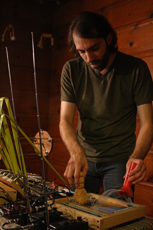 Die Schrauber produces a wide variety of dense musical textures and high-energy interaction. With veteran circuit bender Joker Nies (Cologne), Mario deVega (Berlin) on amplified objects and turntables, and Hans Tammen (New York) on Endangered Guitar and live sound processing, the trio exerts extreme control over their bizarre instruments.